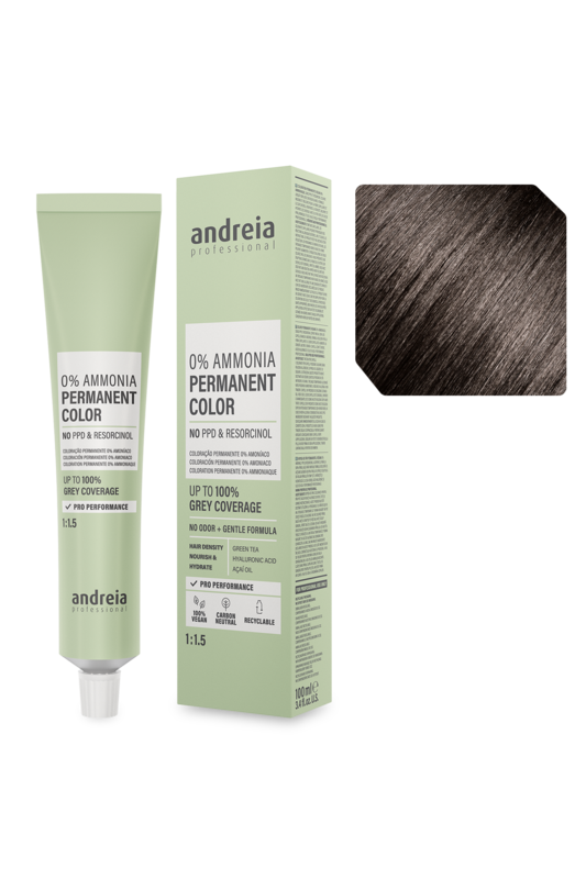 Andreia Coloração Permanente 0% Amoníaco 4.0 Castanho Médio Natural 100ml