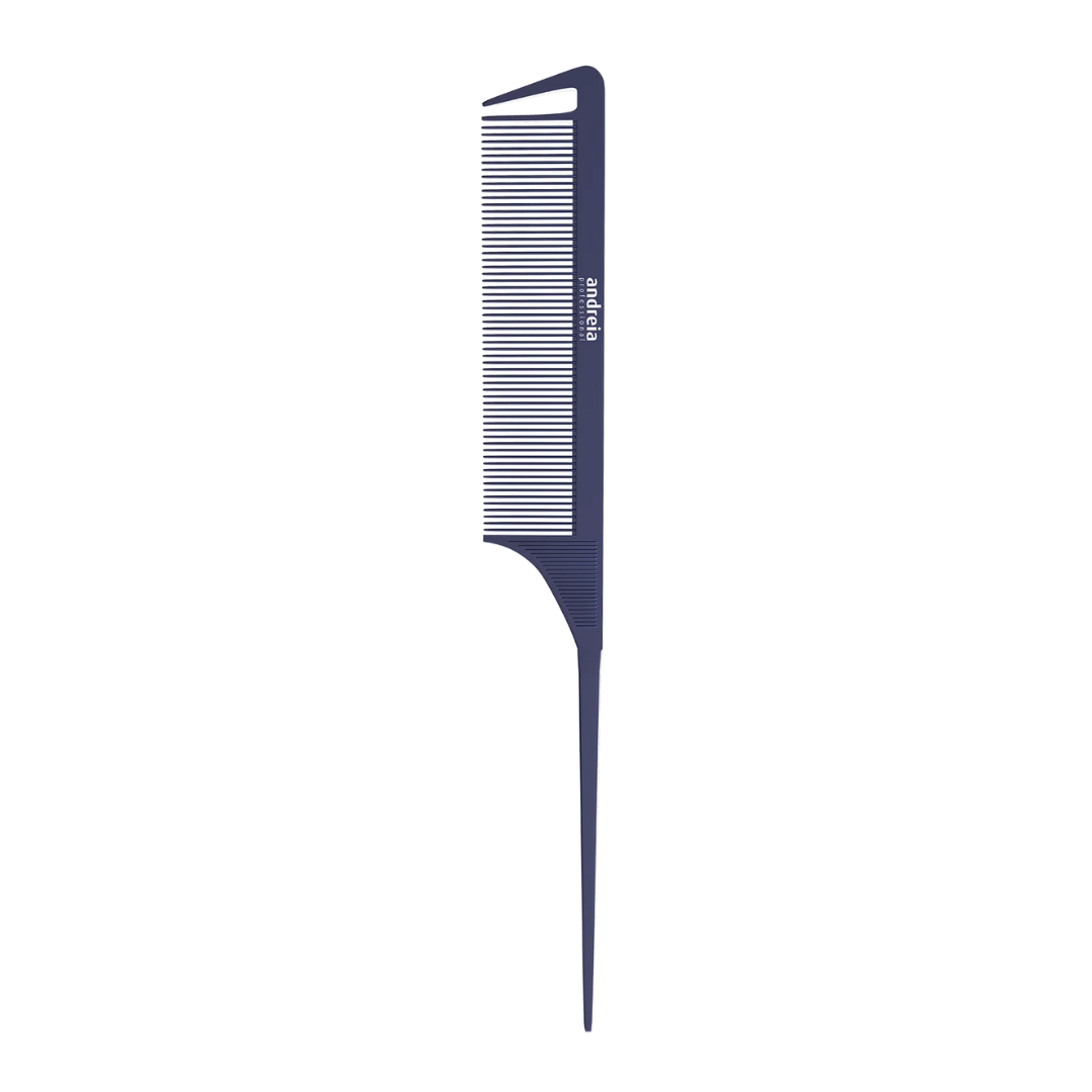 PLASTIC TAIL COMB – Pente cabo de plástico com dente para auxiliar nas divisões das madeixas. Fabricado em material PA, adicionado de fibra de carbono, tornando-o anti-estático.