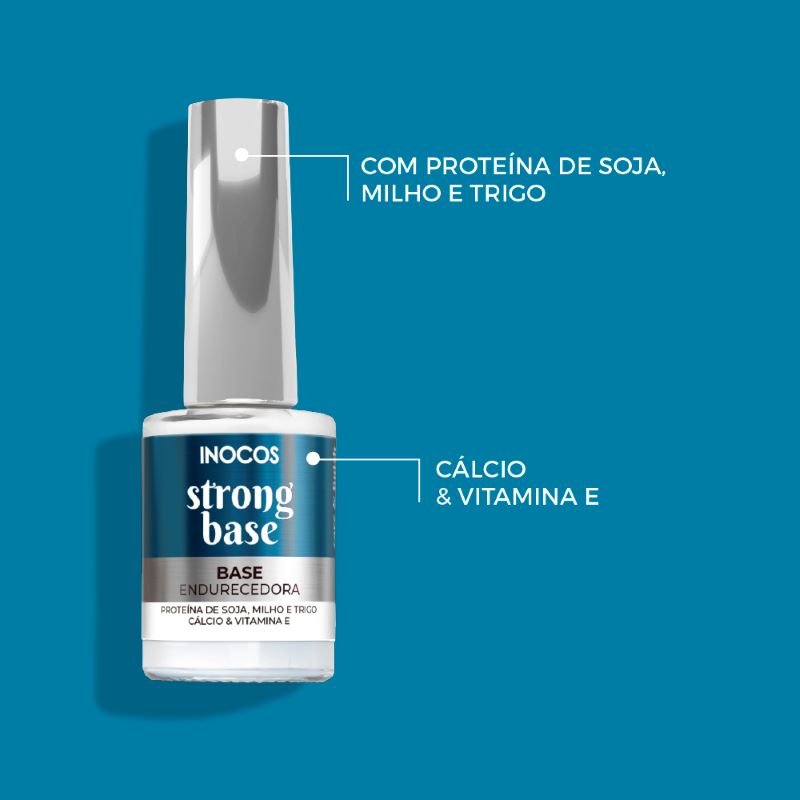 Strong Base, a Base Endurecedora para Verniz Clássico e Like Gel. Com proteína de soja, milho, trigo, cálcio e vitamina E, a base INOCOS tornará as tuas unhas mais fortes e saudáveis. Ideal para uso frequente com a Gama de Verniz Clássico e Like Gel.